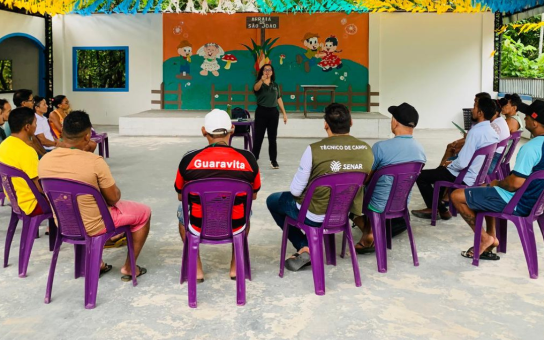 Cametá, 26 de setembro de 2025 – Produtores rurais de Cametá participaram de um encontro promovido pelo SENAR, por meio do Programa de Assistência Técnica e Gerencial (ATeG), que destacou a importância da gestão das propriedades e o acesso a novos mercados por meio do Projeto Agro.BR. O evento contou com 18 produtores das cadeias produtivas de açaí e cacau.
