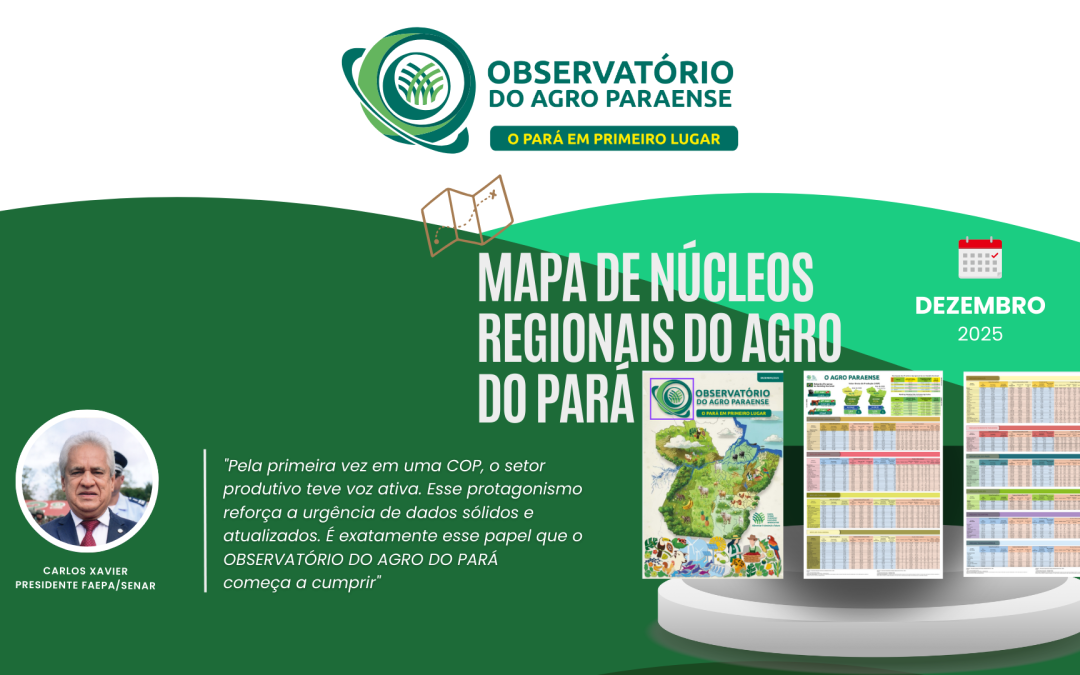 Com o objetivo de transformar dados técnicos em decisões estratégicas para o setor produtivo, o Sistema FAEPA/SENAR anunciou, neste mês de dezembro, o lançamento oficial do Observatório do Agro Paraense. O projeto estreia com a apresentação de seu primeiro produto: o Mapa de Núcleos Regionais do Agro Paraense, uma ferramenta de inteligência territorial desenvolvida para fortalecer a gestão rural no estado.
