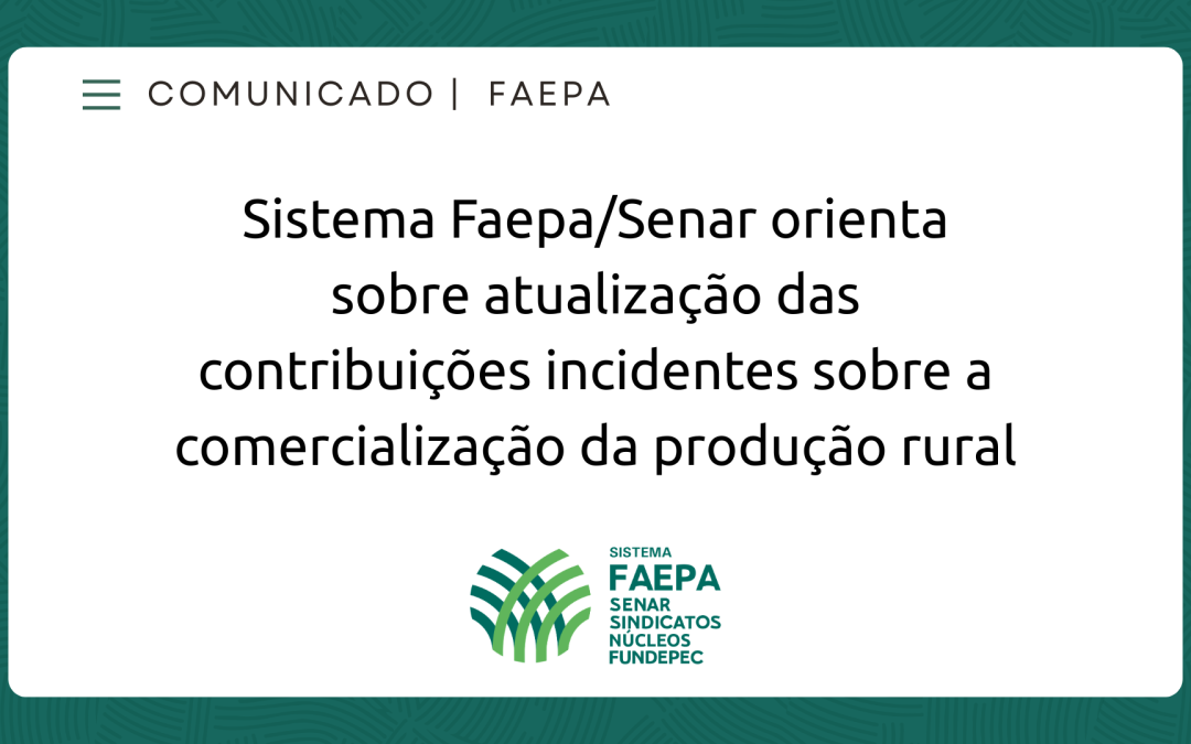 O Sistema Faepa/Senar reforça orientações sobre as alterações nas alíquotas da Contribuição Incidente sobre a Receita Bruta da comercialização da produção rural, aplicáveis a produtores rurais pessoa física e pessoa jurídica, conforme estabelecido pela Lei Complementar nº 224/2025.
